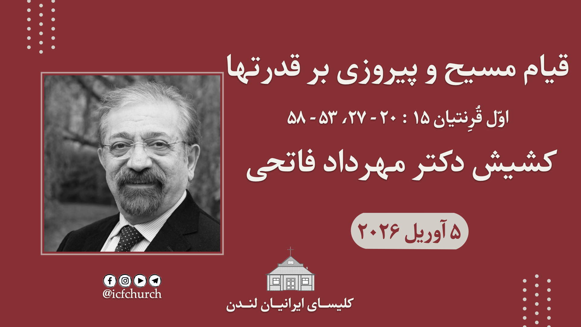 قیام مسیح و پیروزی بر قدرتها اول قرنتیان ۱۵: ۲۰-۲۷ اول قرنتیان ۱۵: ۵۳-۵۸ کشیش دکتر مهرداد فاتحی