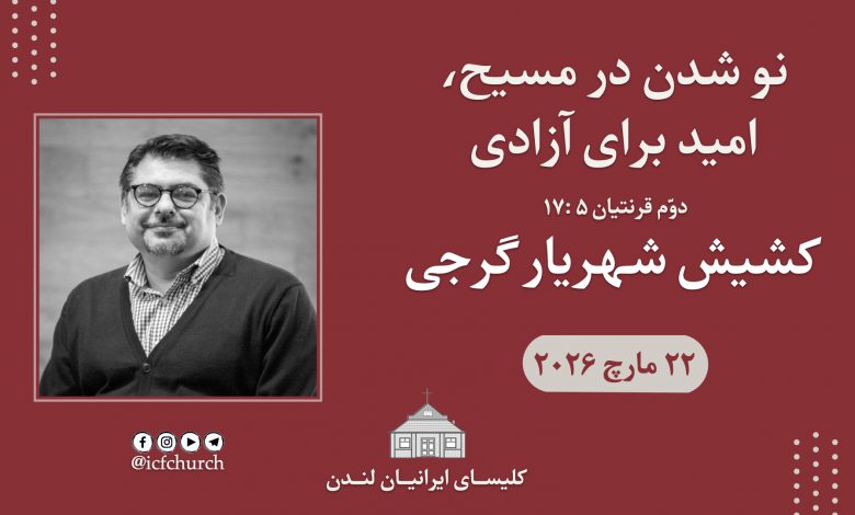 خانه/موعظهها/نو شدن در مسیح، امید برای آزادی موعظهها نو شدن در مسیح، امید برای آزادی کشیش شهریار گرجى ارسال ایمیل 2 ساعت پیش۰ 7,447 کمتر از یک دقیقه https://icfonline.co.uk/wp-content/uploads/sermons/2026/Rev%20Shahriar22-03-26.mp3 دانلود فایل صوتی دوم قرنتیان ۵: ۱۷ کشیش شهریار گرجی کشیش شهریار گرجى ارسال ایمیل 2 ساعت پیش۰ 7,447 کمتر از یک دقیقه نمایش بیشتر اشتراک گذاری فیس بوک توییتر لینکدین اسکایپ واتس آپ تلگرام اشتراک گذاری از طریق ایمیل چاپ